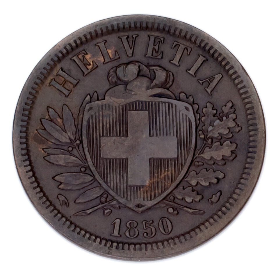 1850-A Swiss - 2 Rappen, Extra Fine, KM# 4.1