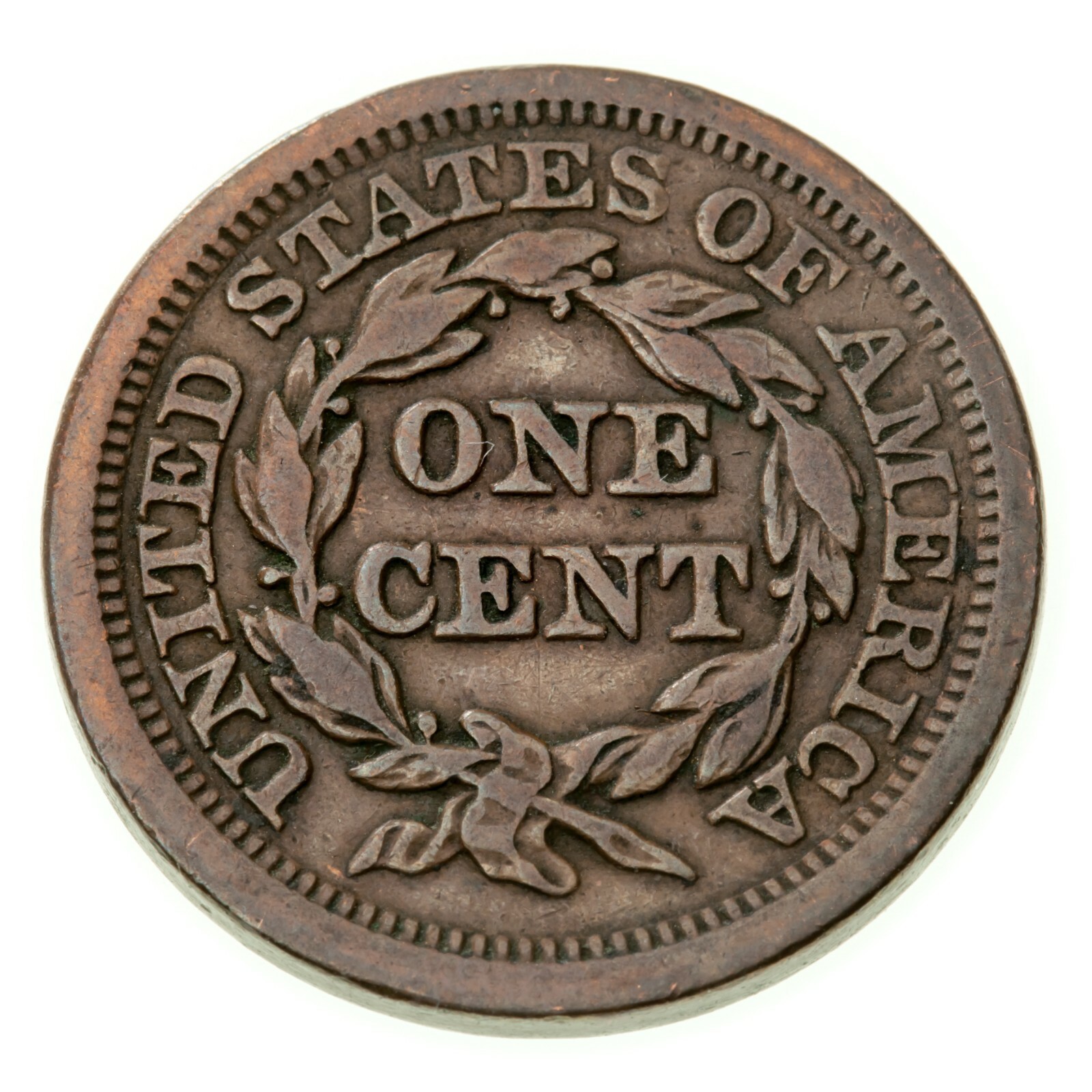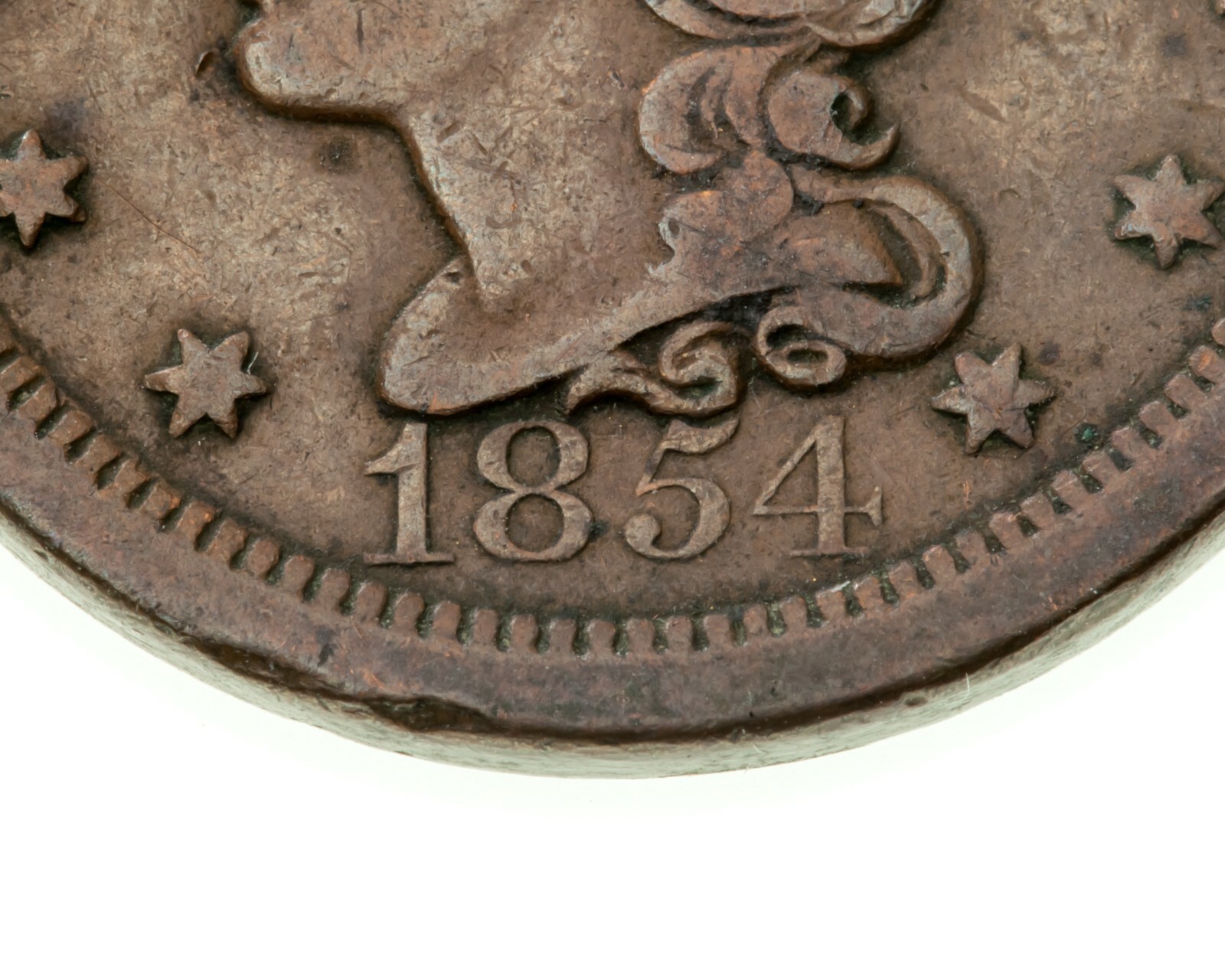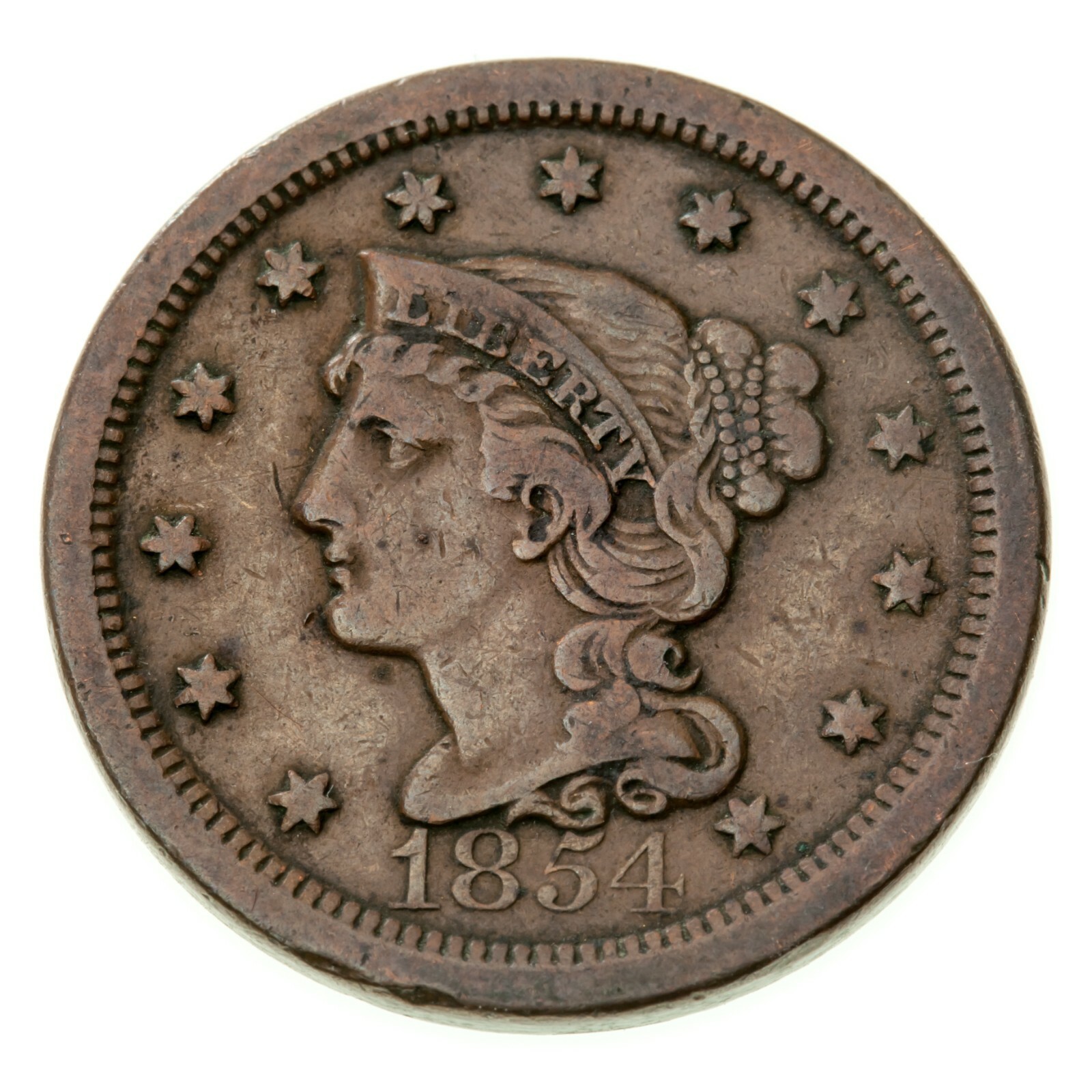 - 1854 1C Large Cent in Very Fine VF Condition, All Brown Color, Nice Detail