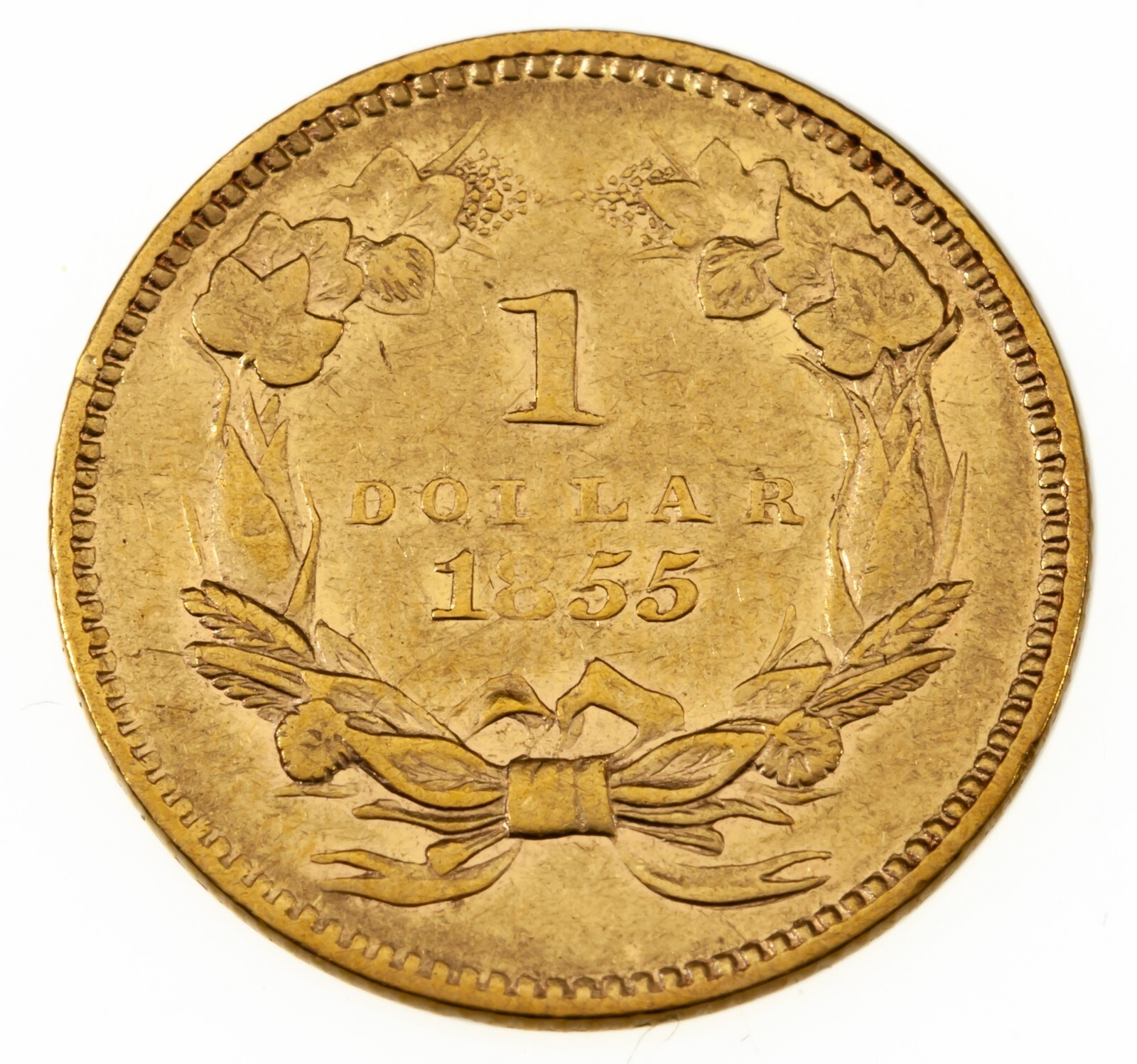 - 1855 Type 2 Or Dollar Pièce de Monnaie En XF Extra Fin État, Beau Début US Or