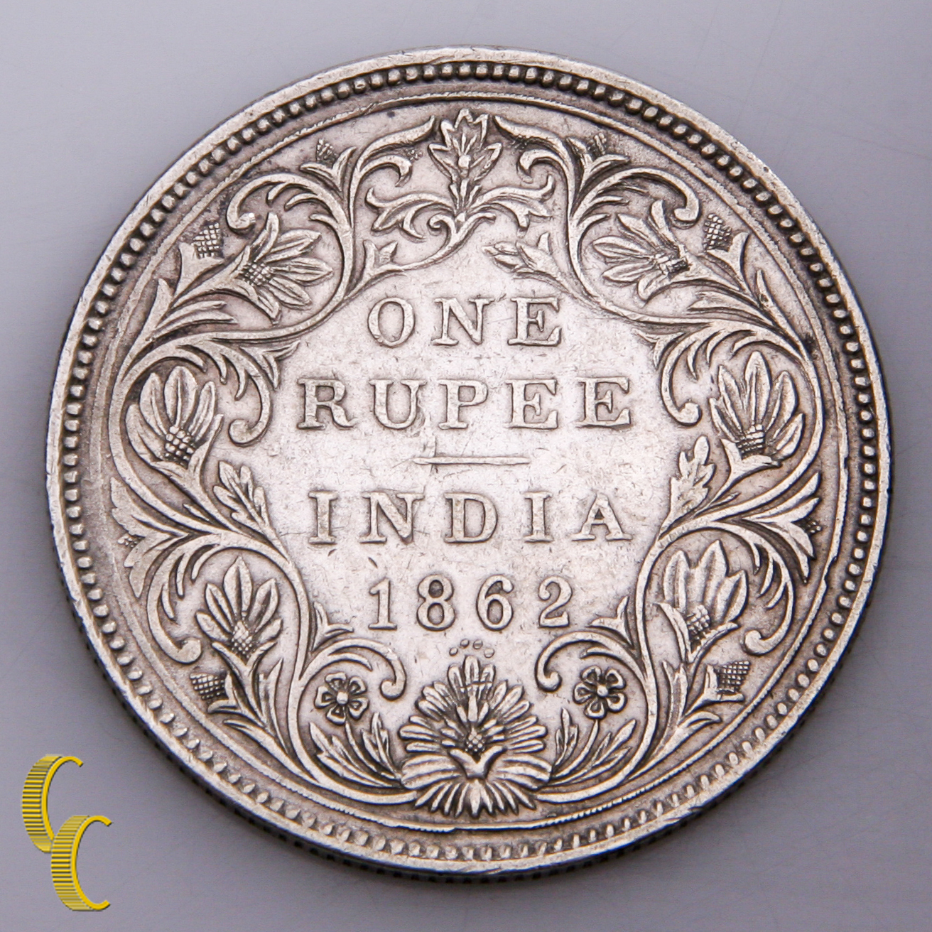 1862 Inde Silver Rupee Bombay Mint Buste A, type II KM # 473.1 de type II