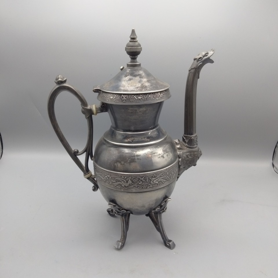 - 1866c. Simpson Hall Miller Co. Quadruple Plate Coffee Pot Dragon Spout