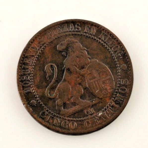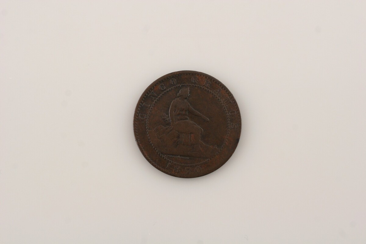 - 1870-OM Spanien 5 Centimos (XF+) Extra Feine Plus Zustand