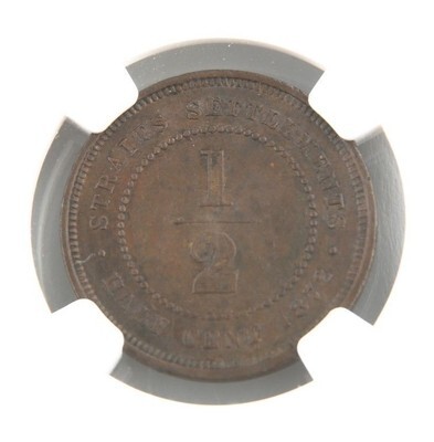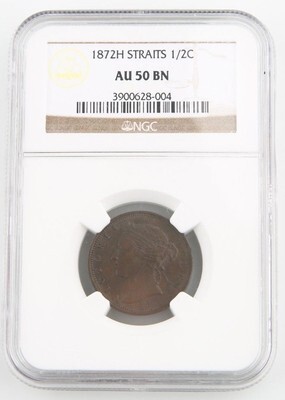 1872-H Straits Insediamenti 1/2 Cent Moneta Selezionato Da NGC AU-50 Bn Km #8