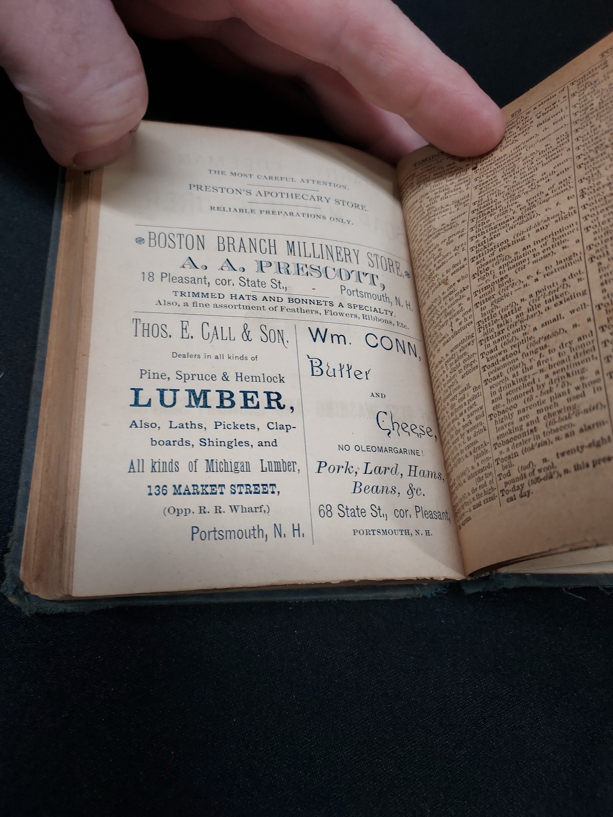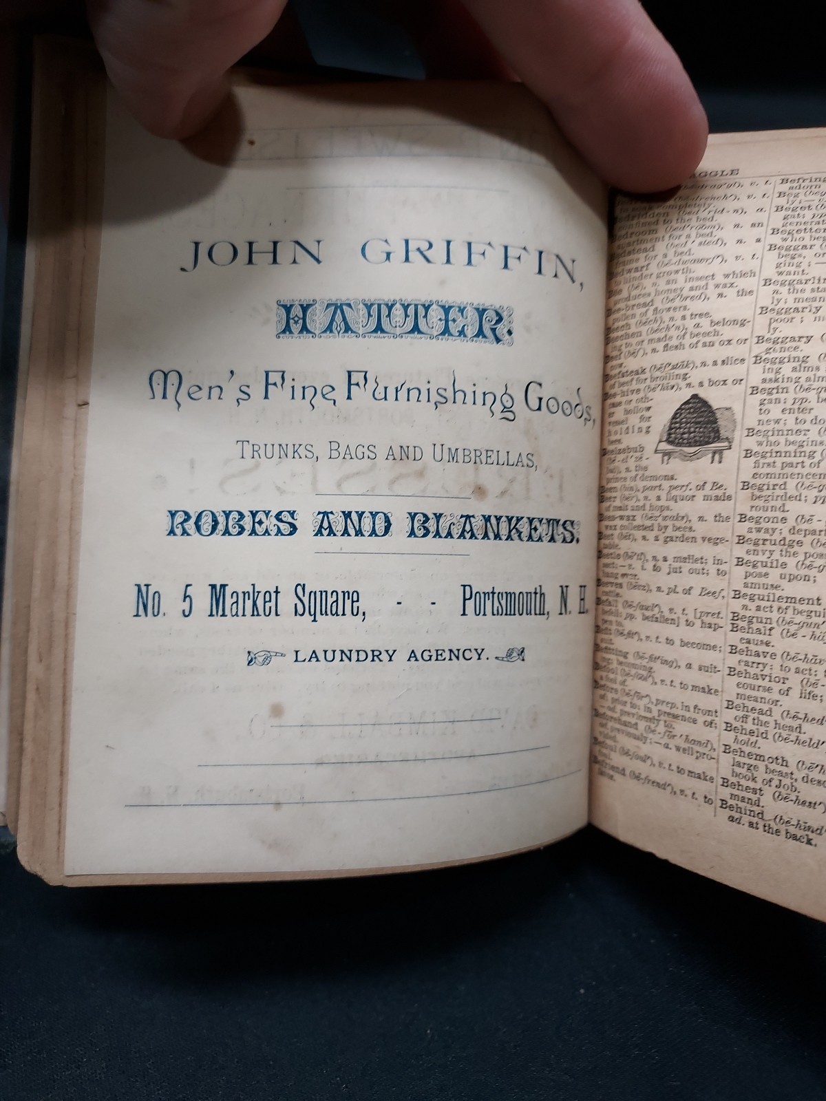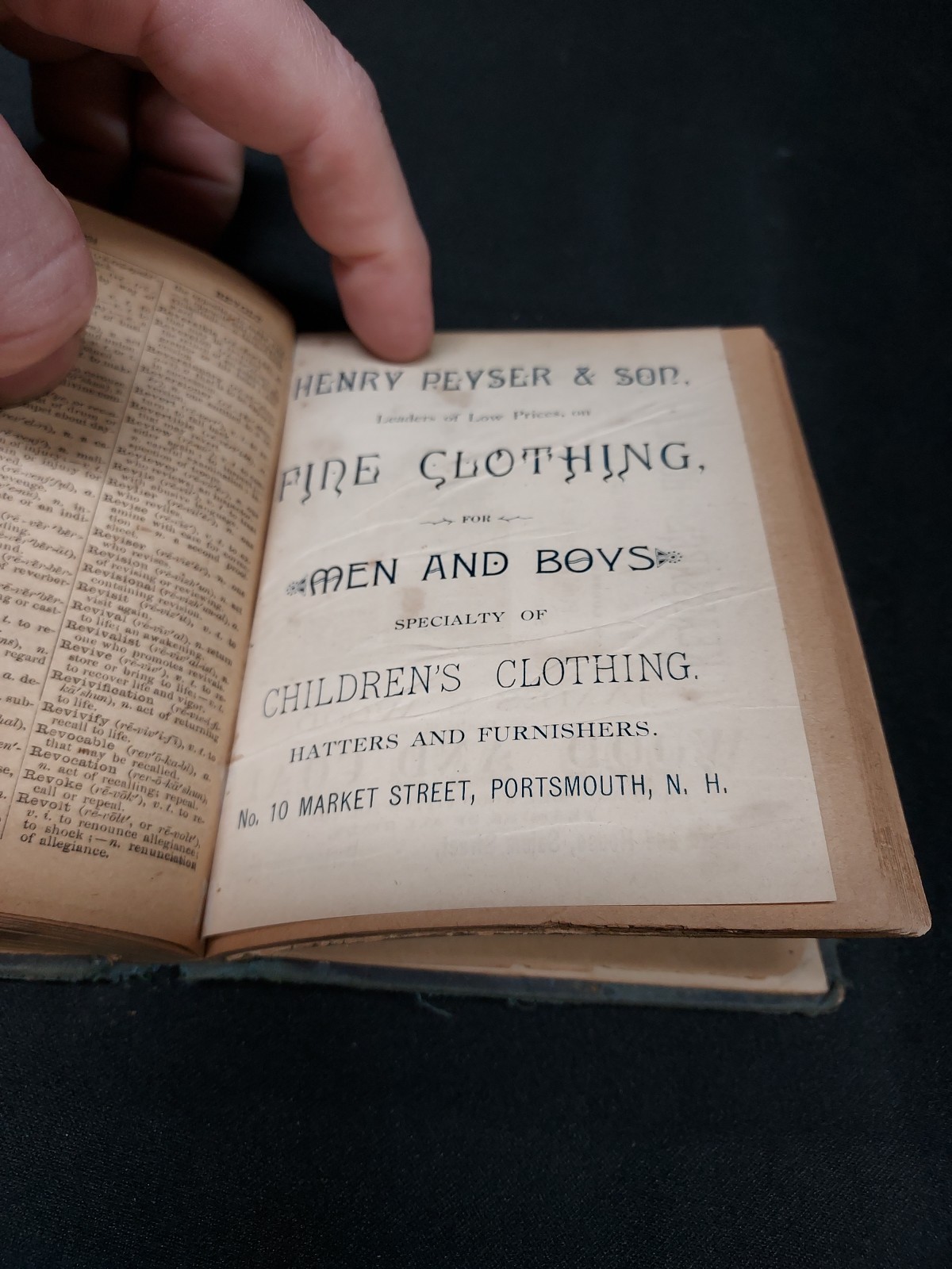 - 1877 Webster's Handy Dictionary Book With Portsmouth New Hampshire Advertising