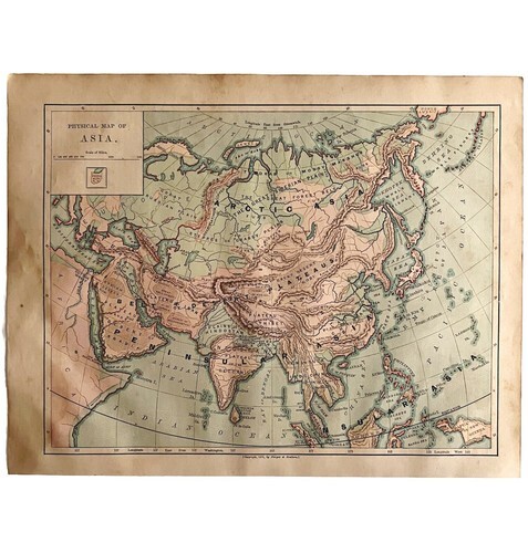 - 1879 Map Asia Desert Arctic Peninsula Belt Victorian Geography 1st Edition DWAA9