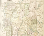 1883 Antique Map New Hampshire Vermont Victorian Political Bi-Fold USA E90F3