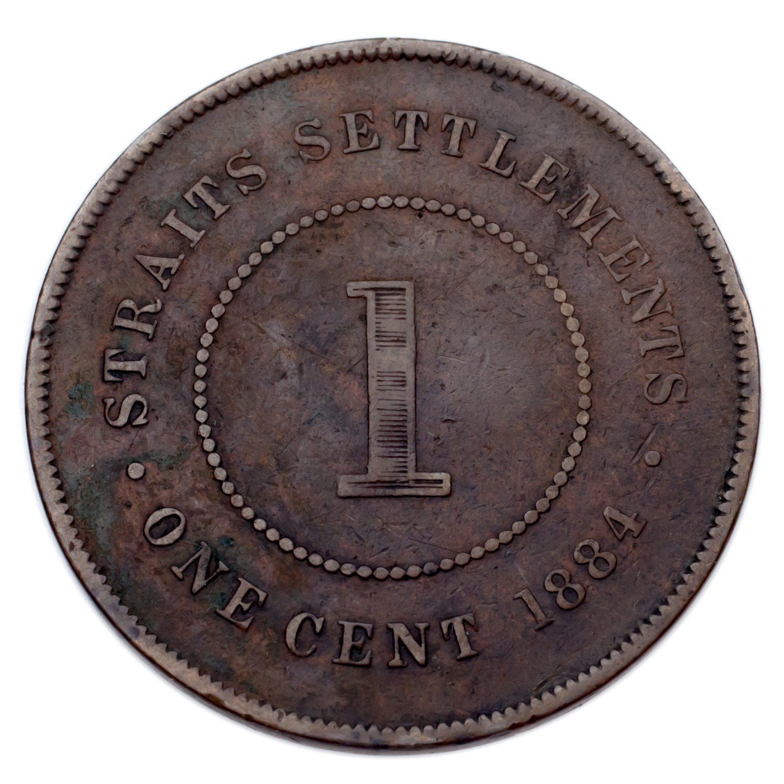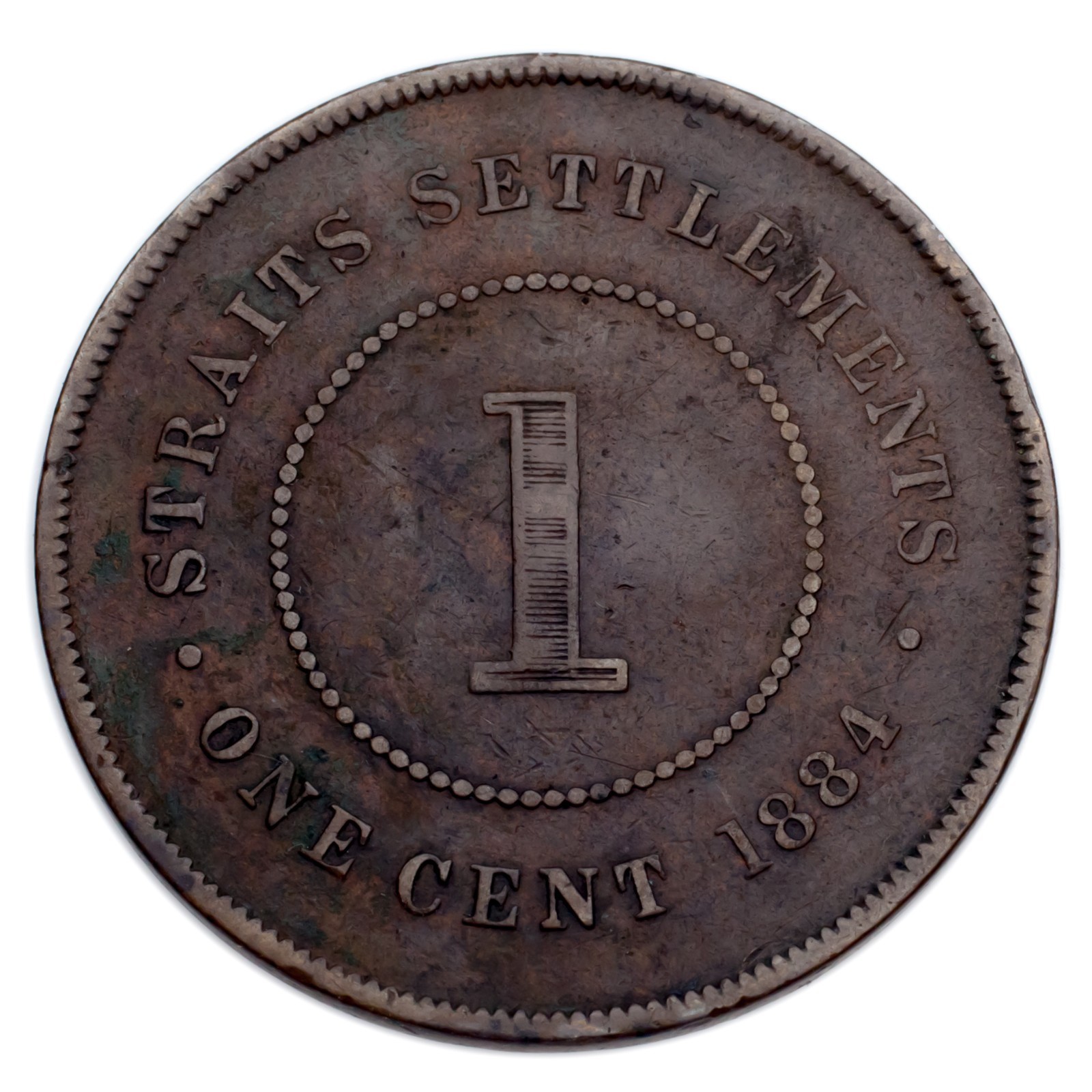 1884 Straits Settlements Cent Coin (tres fin + condition) KM # 9A
