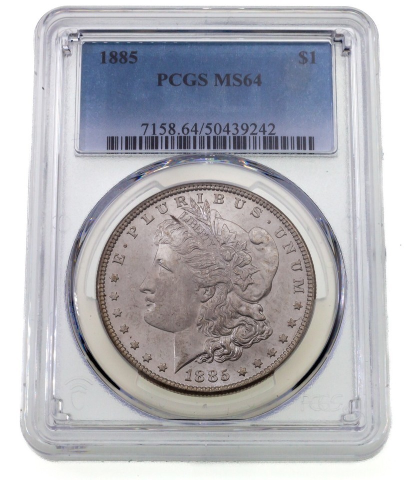 1885 $1 Silver Morgan Dollar Graded by PCGS as MS-64 Reverse Toning!