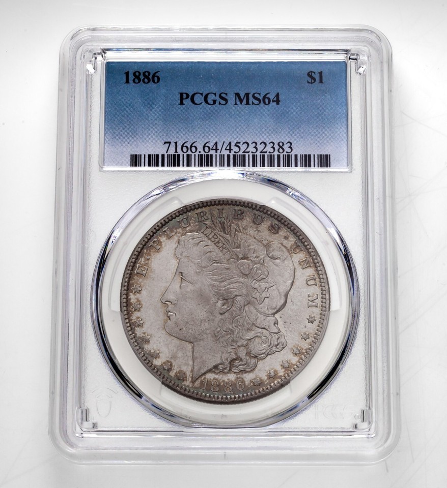 - 1886 $1 Morgan Dollar Graded By PCGS As MS64 Cool Reverse Toning!
