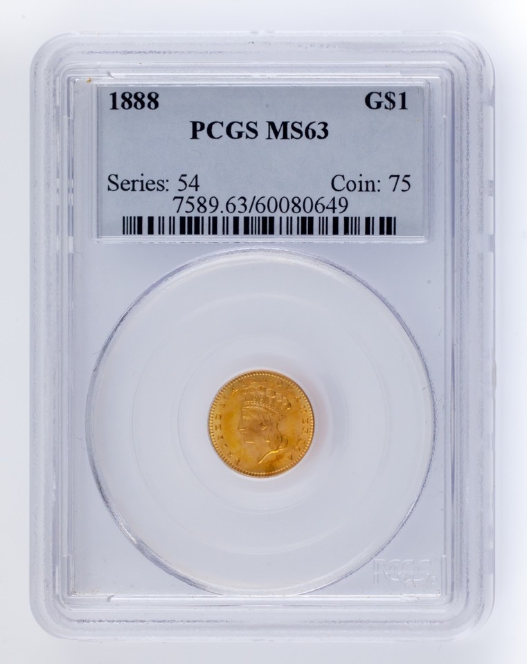 - 1888 G$1 Gold Indian Princess Graded by PCGS as MS63! Great US gold Dollar
