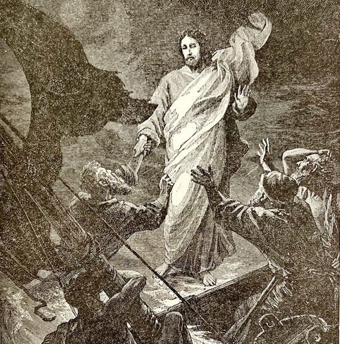 - 1888 Jesus Calms Storm On The Sea Victorian Religious Art Print Bible DWN9F