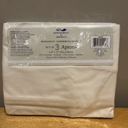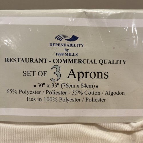 - 1888 Mills Restaurant Aprons Set Of 3 Cotton Poly Blend 30x33” Cream