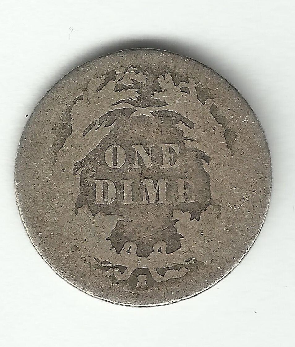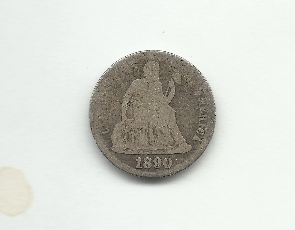 (1) USED 1890 SEATED LIBERTY DIME. ROUGH CONDITION, YOU WILL RECEIVE THE DIME FEATURED IN THE PICTURES. YOU WILL RECEIVE ONE (1) USED 1890 SEATED LIBERTY DIME, AS PICTURED, SHIPPED BY USPS....