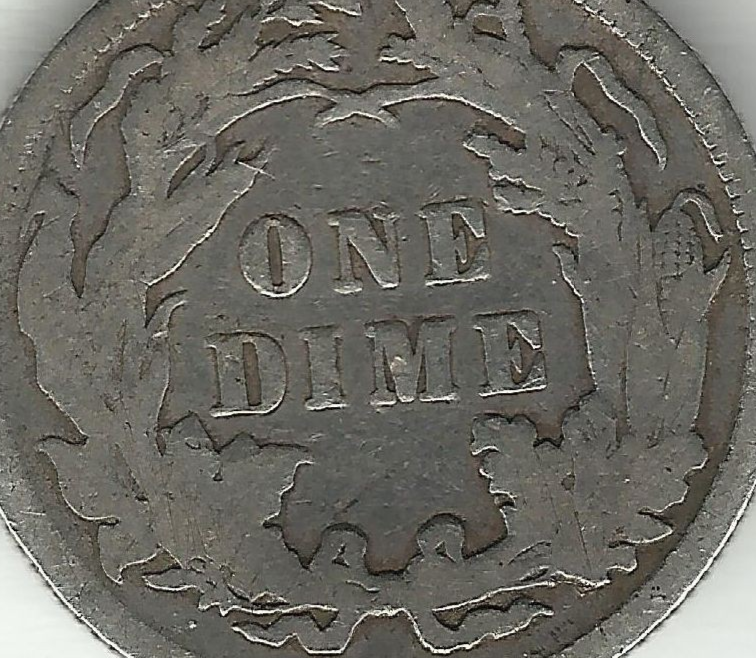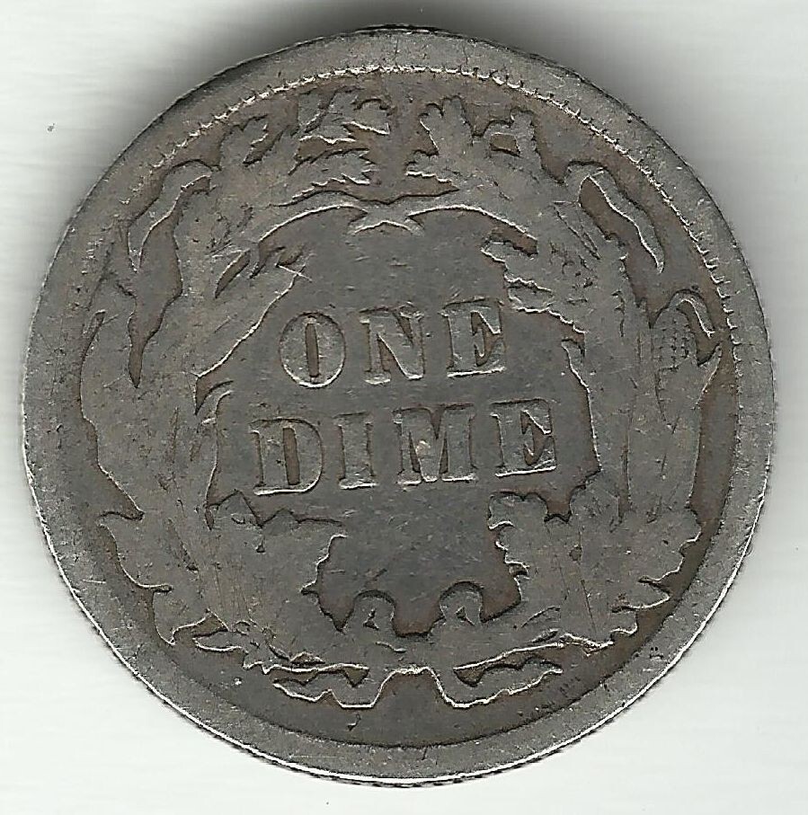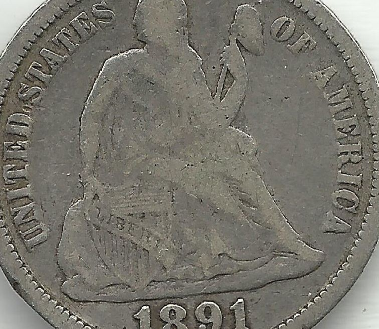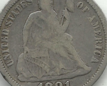 - 1891 Dime Seated Liberty Coin No mint mark = Philadelphia