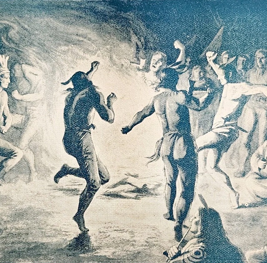 - 1891 Sioux Ghost Dance Blue Plate Print Victorian Indian War History F6G