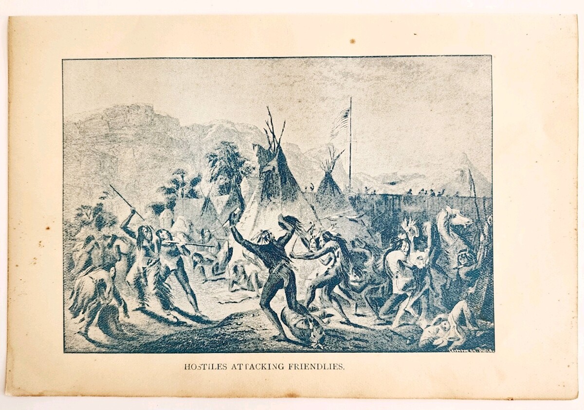 - 1891 Tribal Battle Plate Print Victorian Indian Wars Sitting Bull History F6G