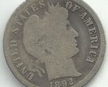 (1) 1892 BARBER DIME WITH NO MINT MARK. NO MINT MARK INDICATES PHILADELPHIA MINT. YOU WILL RECEIVE ONE (1) 1892 BARBER COIN WITH NO MINT MARK, AS PICTURED, SHIPPED BY USPS....
