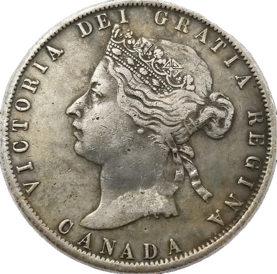 This intricately crafted 50 cent coin bears the laureate effigy of Queen Victoria, featuring a regal left-facing portrait with a detailed diadem, ribbons, and floral ornamentation in the hair. Surrounding her profile is the Latin inscription ?VICTORIA DEI GRATIA REGINA CANADA?, affirming her sovereign rule over the young Canadian confederation. The obverse?s fine detailing is a testament to the engraving traditions of the late 19th century. This particular issue reproduces the iconic characteristics of the Victorian coinage style with great fidelity.