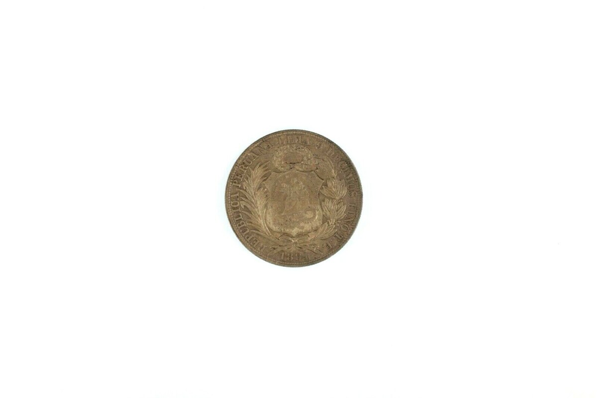 1894 Guatemala Peso 1/2 Real Counterstamped Peru Sol In AU Condition KM 224