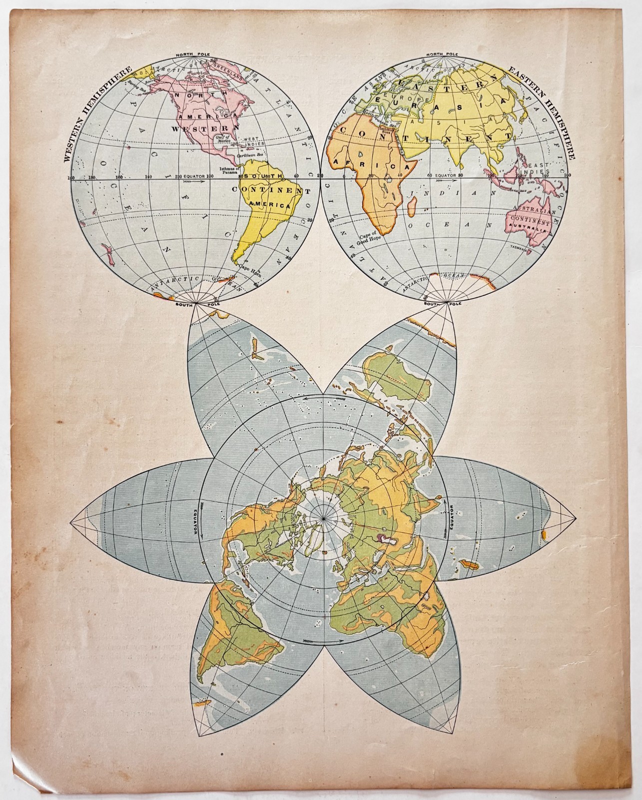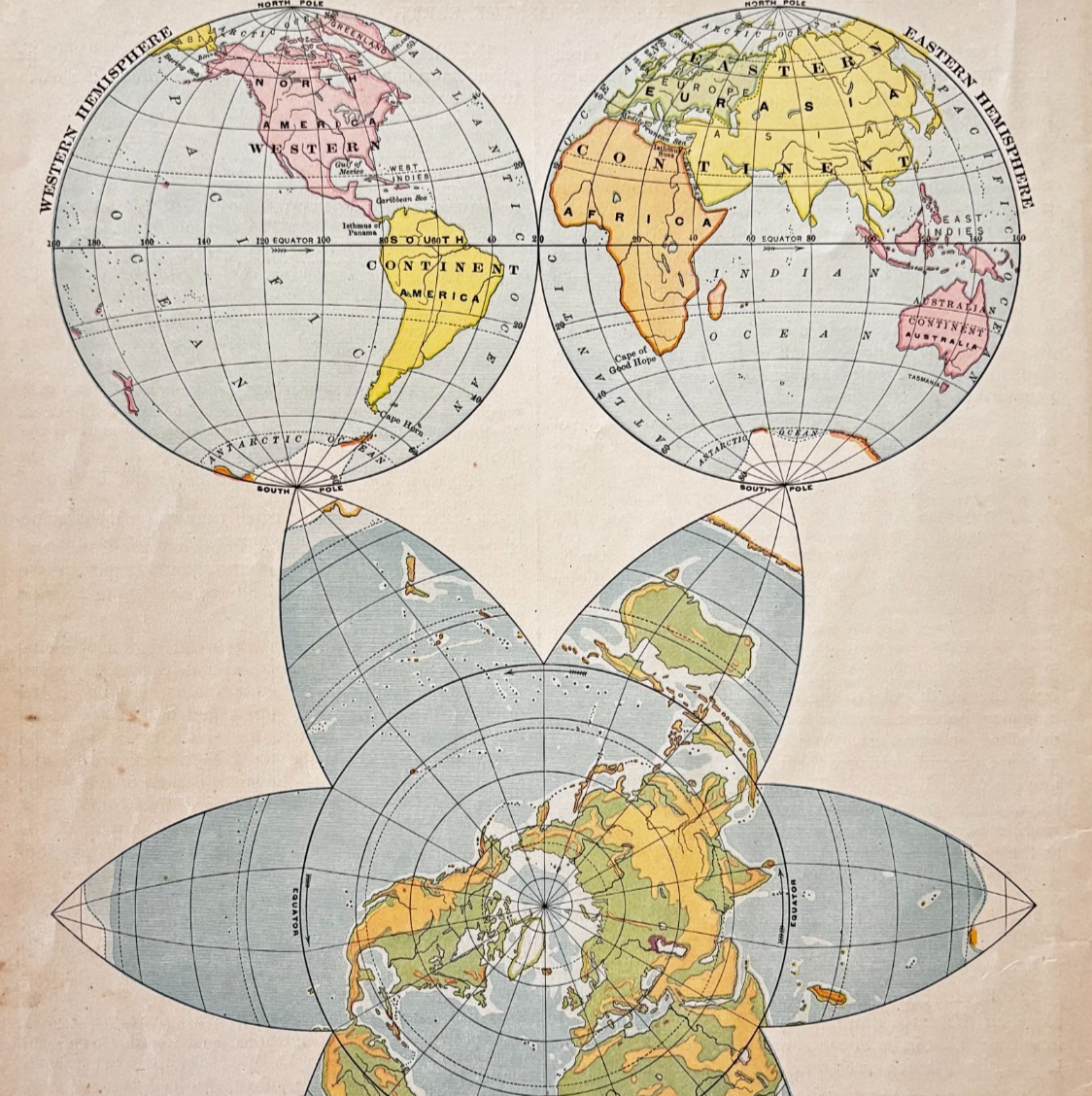 1898 Map East & West Hemispheres Victorian Physical Geography Atlas Print DWXX1