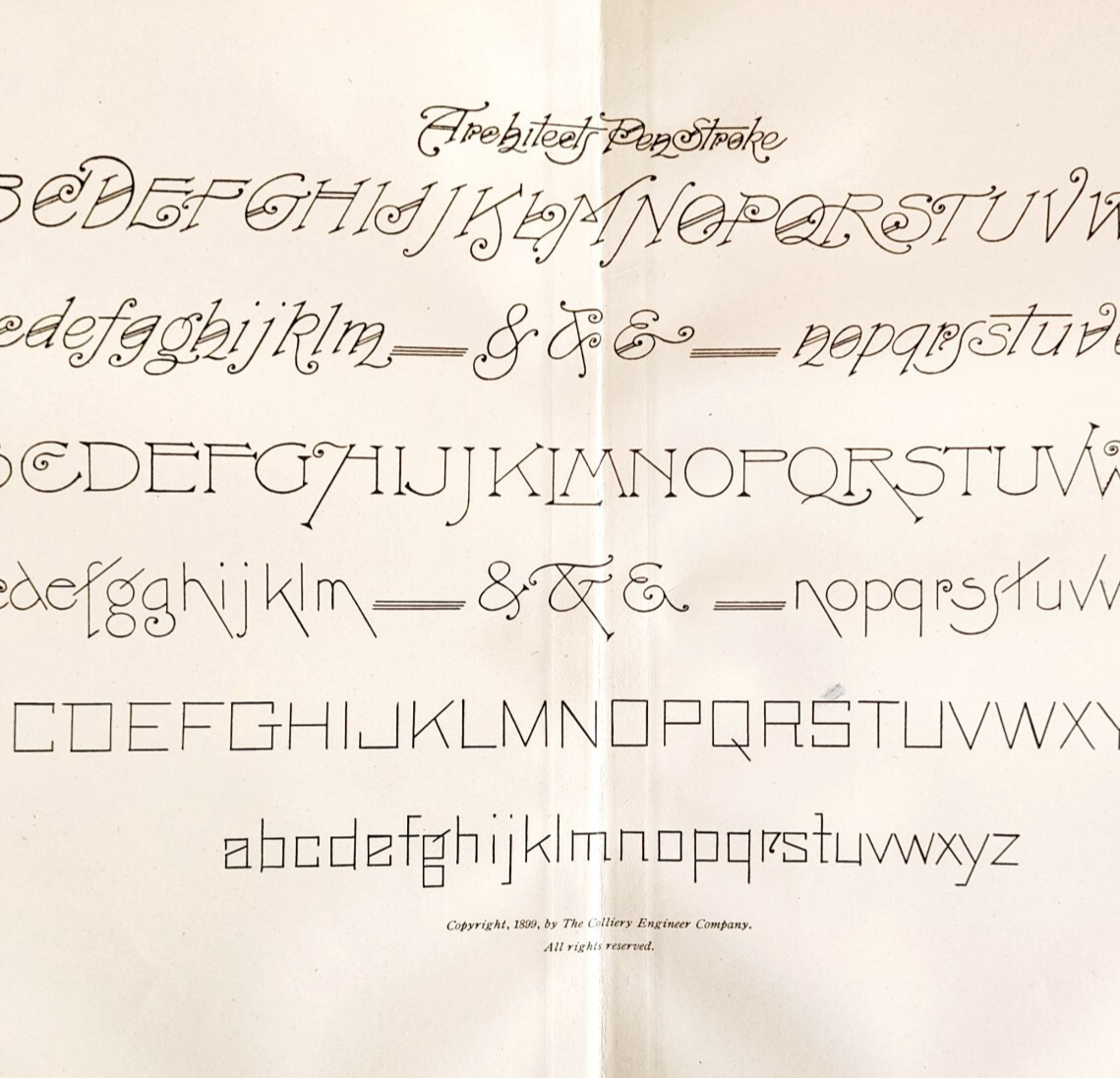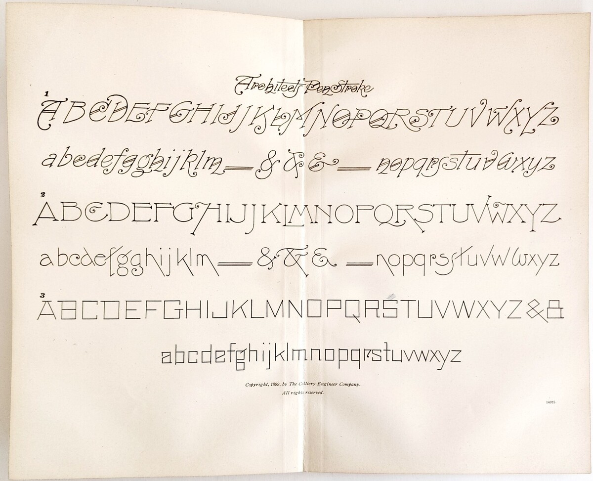 - 1899 Architect's Pen Strokes Font Victorian Lettering Example Penmanship DWH5A