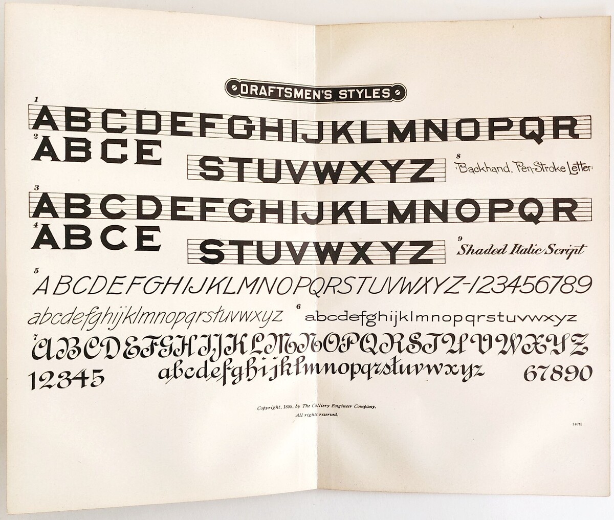 - 1899 Draftsmen's Styles Font Victorian Lettering Example Penmanship DWH5A