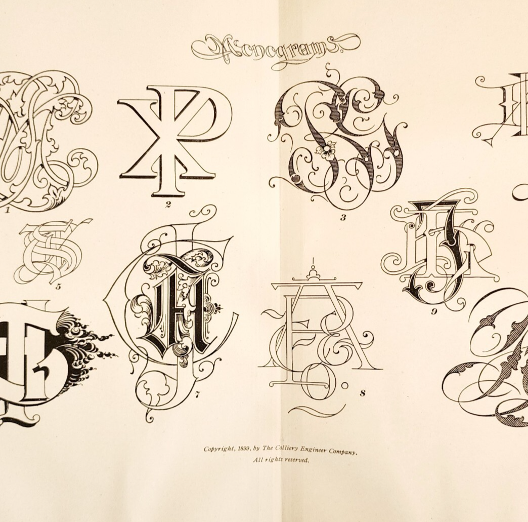 - 1899 Monograms Ornamentation Victorian Lettering Example Penmanship DWH5A