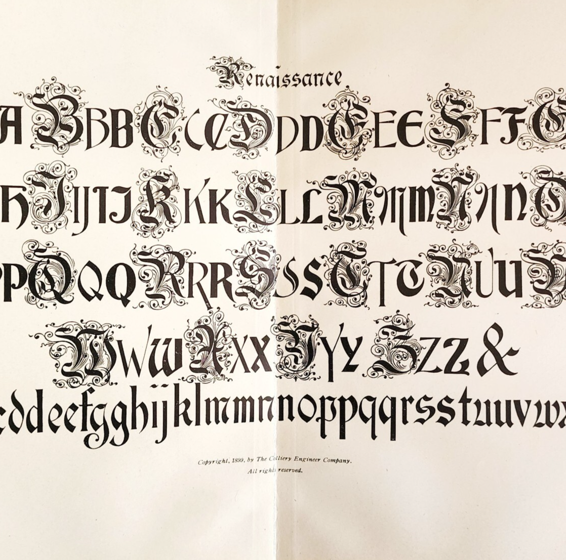 1899 Renaissance Style Font Victorian Lettering Example Penmanship DWH5A