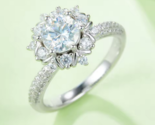 18K 925 Sterling Silver 1CT Round Cut Moissanite Flower Design Ring (Size 6-9)