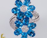- 18K Weißgold Blauer Topas & Diamant Blumenring Größe: 5