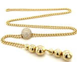 18K Yellow Gold Ball Chain Lariat Necklace w/ 1 CT Diamonds Accents 35”