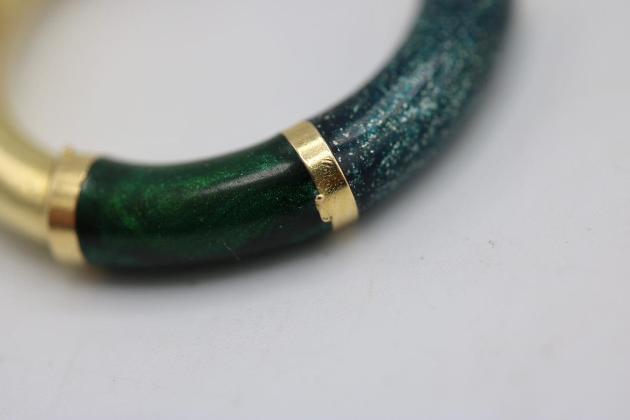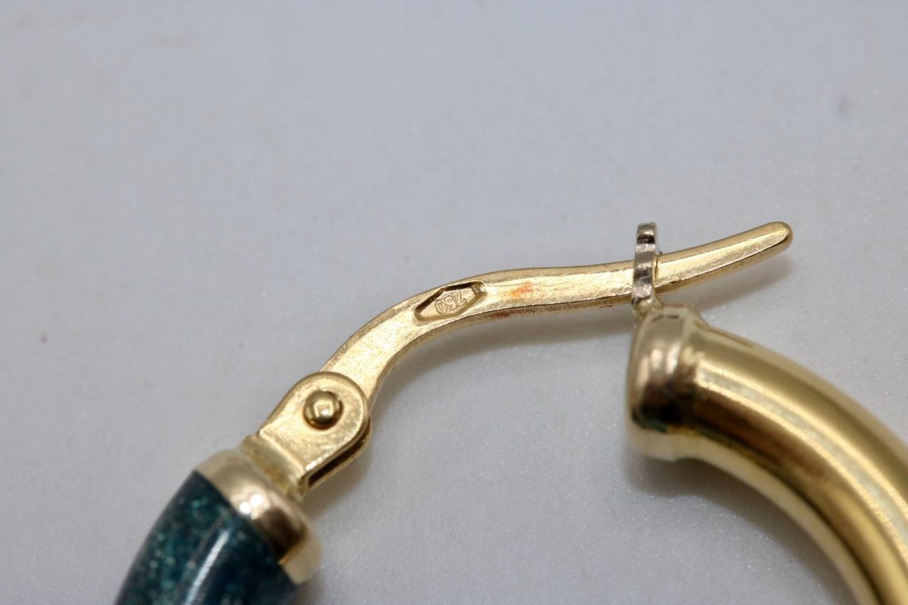 - 18K Yellow Gold Green Enamel Hoop Earrings 20mm 3.3 grams