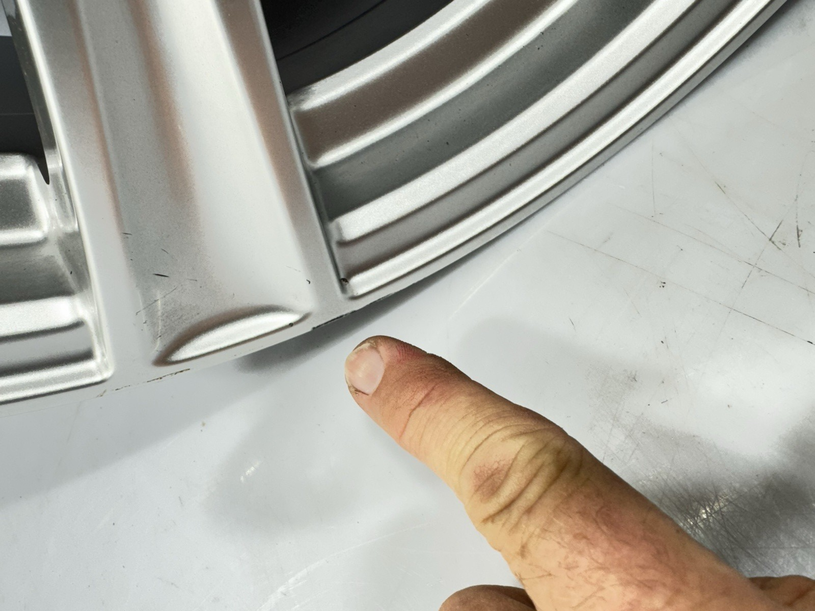 WHEEL HAS VERY MINOR WEAR FROM MOUNTING AND DISMOUNTING ONCE. NEVER DRIVEN ON ONLY MOUNTED ON A TIRE.
