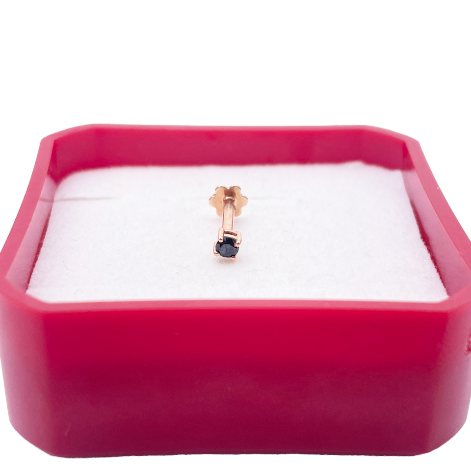 18ct Rose Gold Black Diamond Nose Stud / Nose Pin 0.05 Carats 4-Claw 2.0 mm