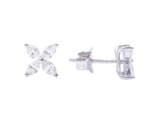 - 18ct White Gold Natural Marquise Diamond Four Leaf Stud Earrings 0.75ct