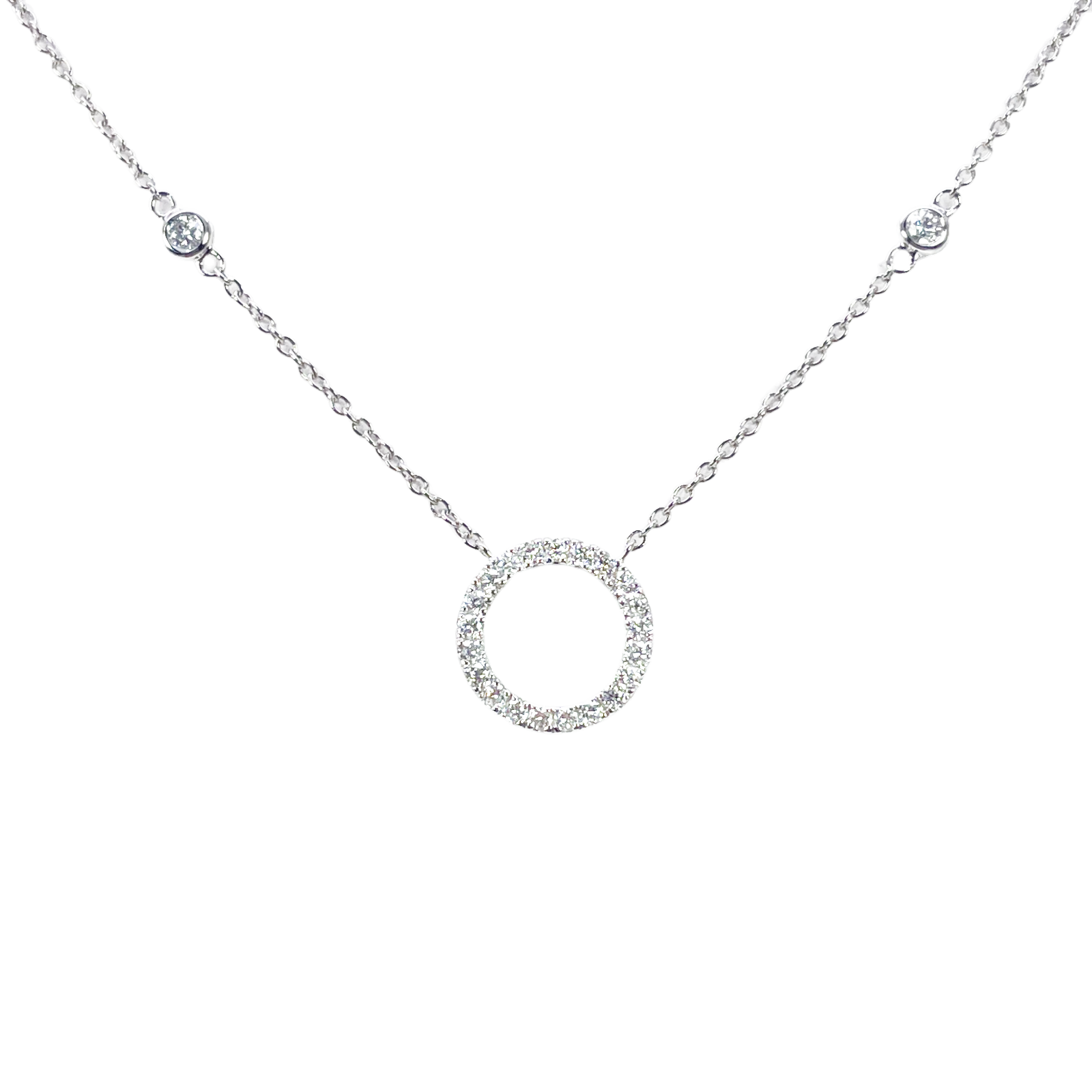 18ct White Gold Natural Round Diamond 0.20ct Circle of Life Necklace 17 Inches