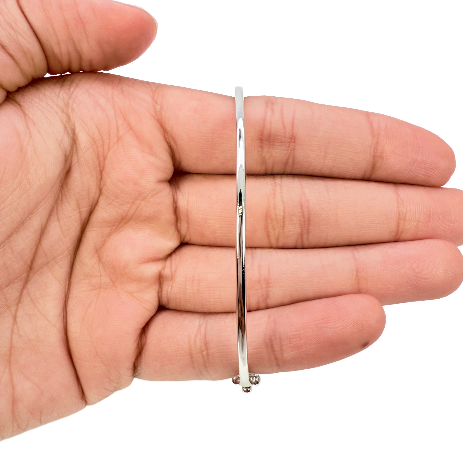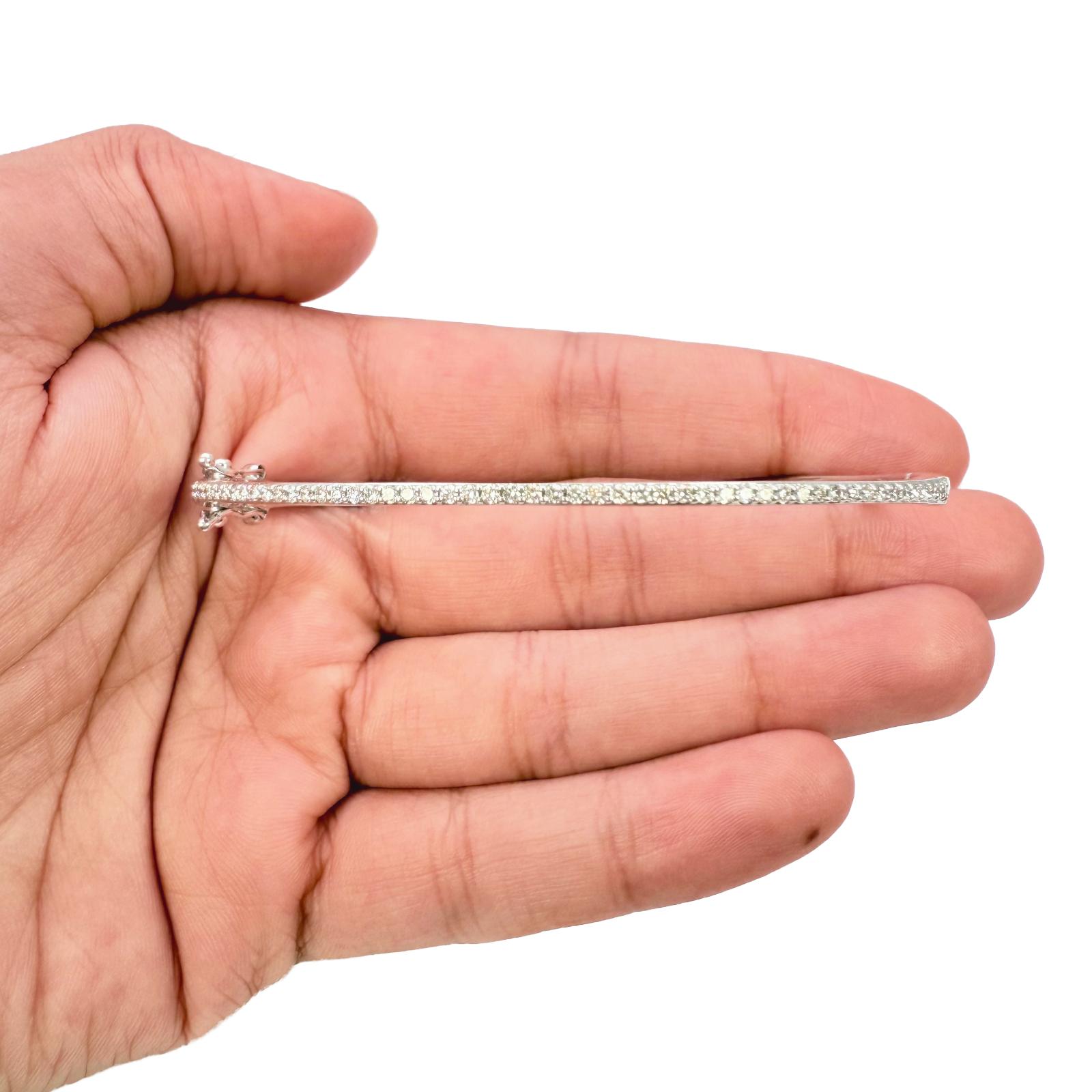 - 18ct White Gold Natural Round Pave Diamond High-Polished Oval Bangle 0.50ct