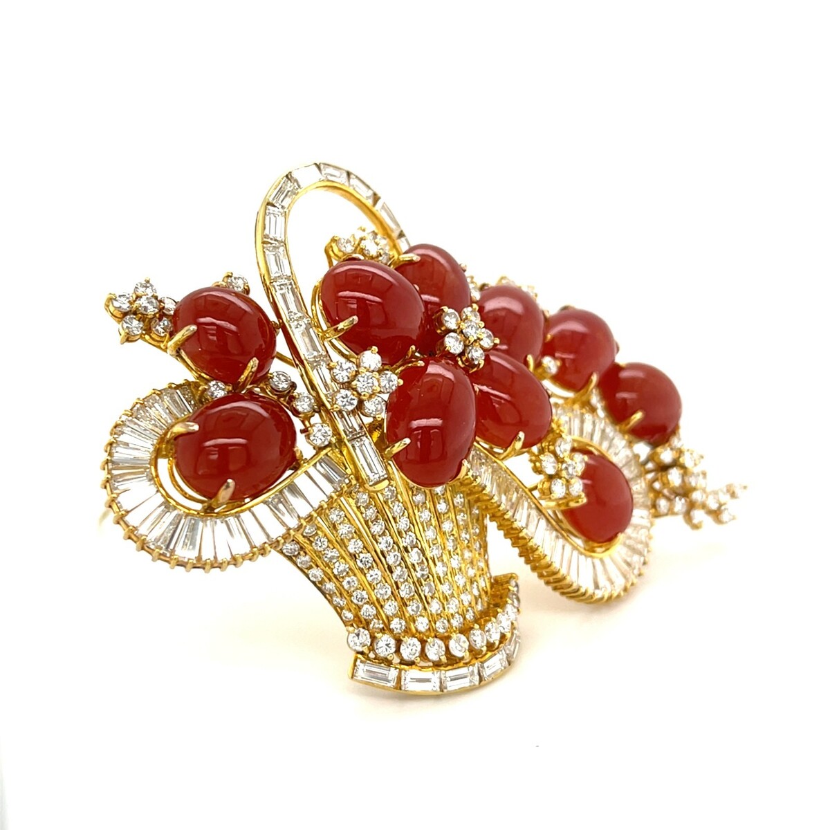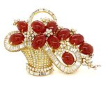 18k Gold 8.8ct Diamant Und Jade Hartstein Korb Brosche Karat Gewicht : 8.80