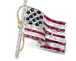 - 18k White Gold Diamond, Ruby, and Sapphire Gem American Flag Brooch