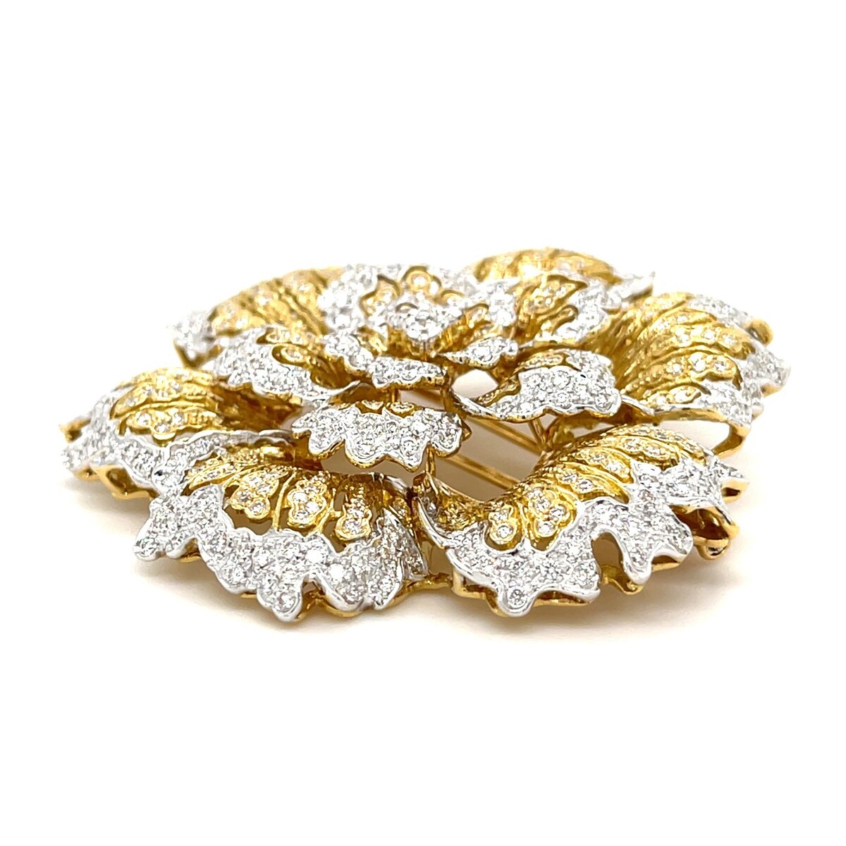 18k zweifarbige goldene große Blumenbrosche mit 4,15 CT Diamonds Wunderschon!