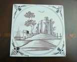 18th century salvaged Delft manganese tile with depictions of country buildings and trees, 5" x 5", some surface scratches, fleabites rough borders and light chips, look at the pictures they are part of the description