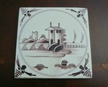 - 18th century salvaged Delft manganese tile with depictions of country building
