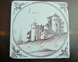 18th century salvaged Delft manganese tile with depictions of country buildings, 5" x 5", some surface scratches, fleabites rough borders and light chips, look at the pictures they are part of the description
