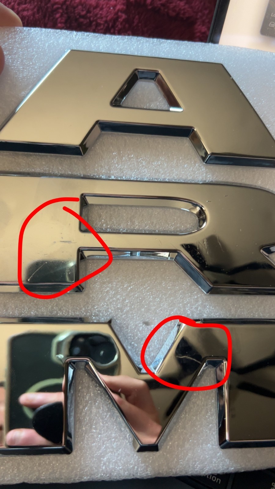 See 3rd picture, has some scratches on A and M but can't notice it unless you're close