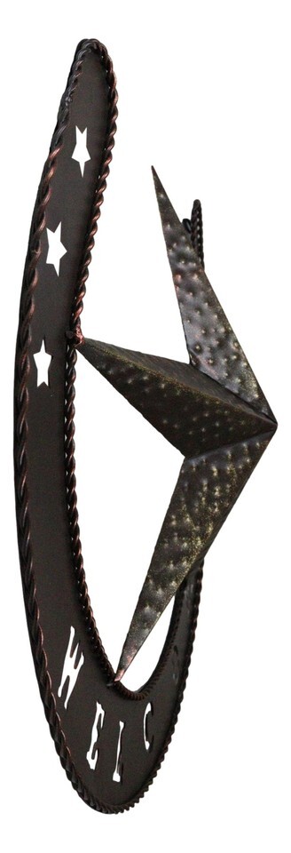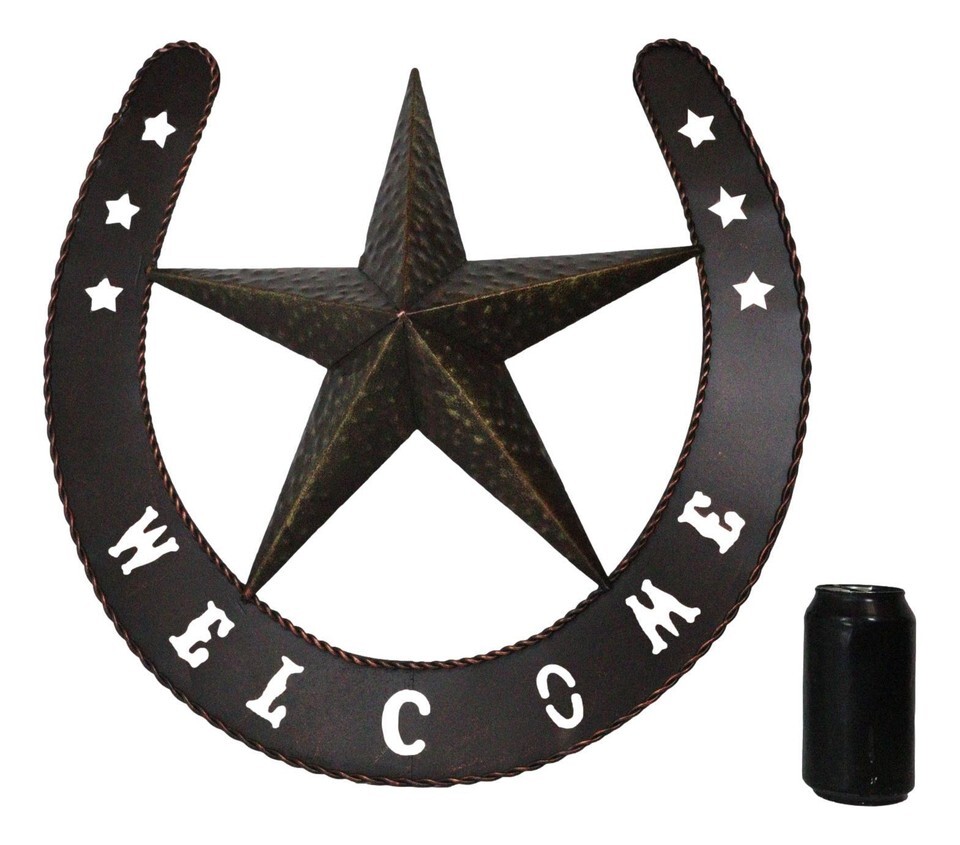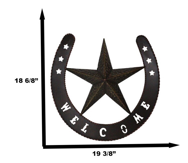 ? Rope a themed room in the perfect style! This Western Horseshoe and Star Metal Wall Decor features an aluminum construction with a bronzed finish. The horseshoe is probably one of the most well-known good luck symbols of the Western World. The horseshoe is a very auspicious symbol, a charm used to protect against any form of evil and bring good luck.