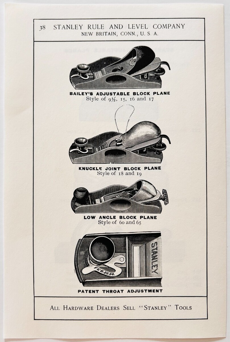 - 1900 Stanley Tools Block Plane Types Advertisement Victorian Wood Engraving F17F