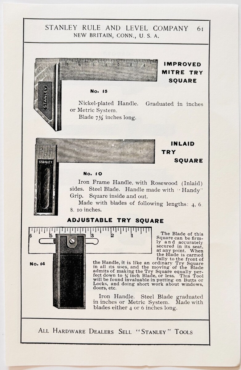 From "Stanley Tools Rule And Level Catalogue" 1900