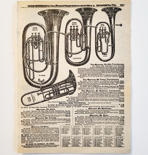- 1900 Trombones Brass Marceau Advertisement Victorian Sears Roebuck 5.25 x 7"
