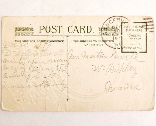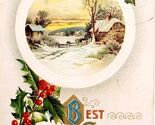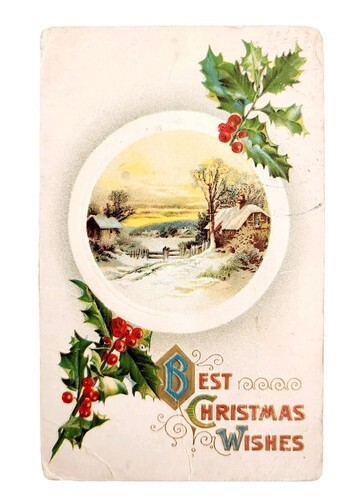 1900s Greeting Card Postcard Christmas Wishes Winter Scene Cabin Ephemera E83B
