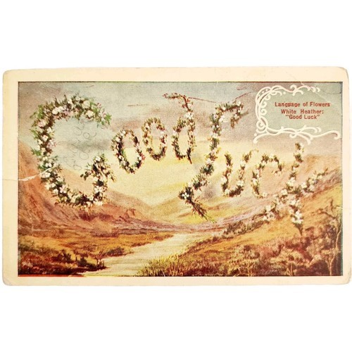 - 1900s Greeting Card Postcard Good Luck White Heather Flowers Ephemera E83C
